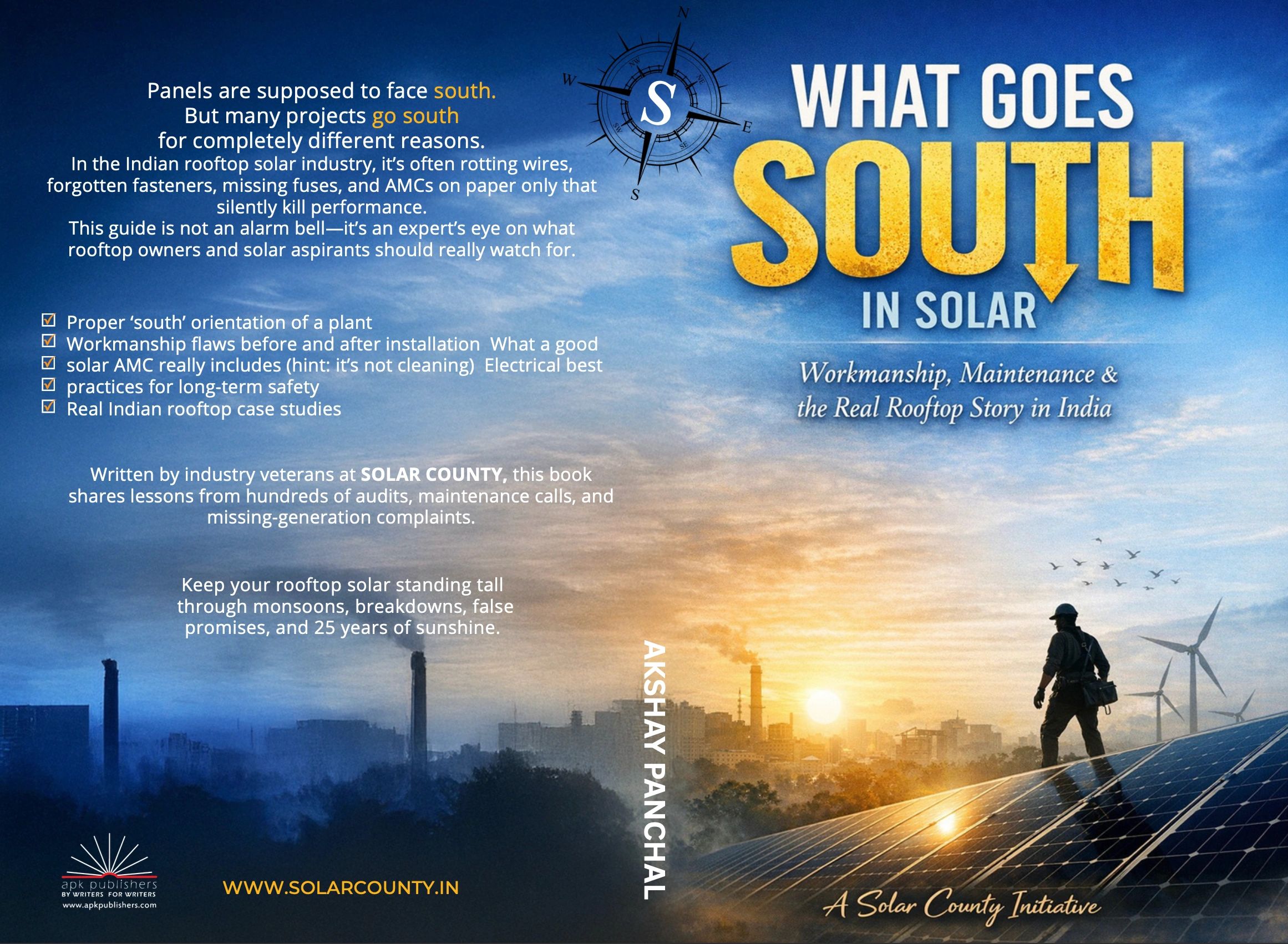 I’m pleased to share that I have authored a book titled “What Goes South in Solar.” Over the past decade in the solar industry, I’ve had the opportunity to closely observe on-ground realities—what works, what fails, and more importantly, why systems underperform despite good intentions. This book is an effort to bring
